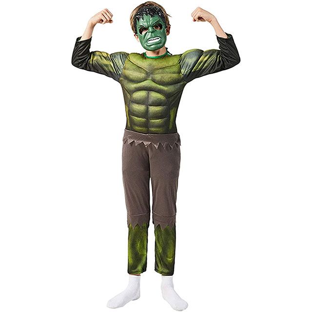 Този мега-готин костюм с мускули, маска и изстрелваща ръкавица ще придаде на малчугана външен ви, като на Хълк страховития зелен мутант.